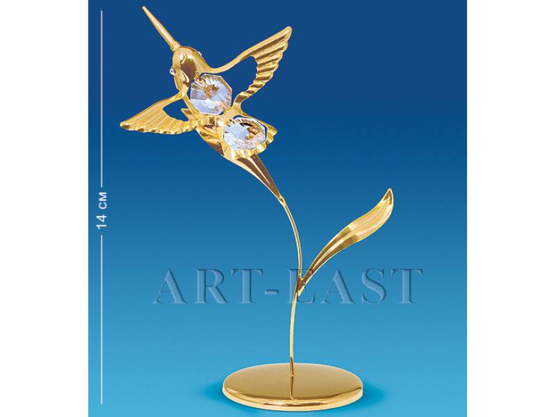 Изделие из металла, покрытое золотом 24к, с 2-мя хрусталиками «Swarovski» размеры Колибри (L/W/H) 6/6/5,5 см высота всего изделия 13 см