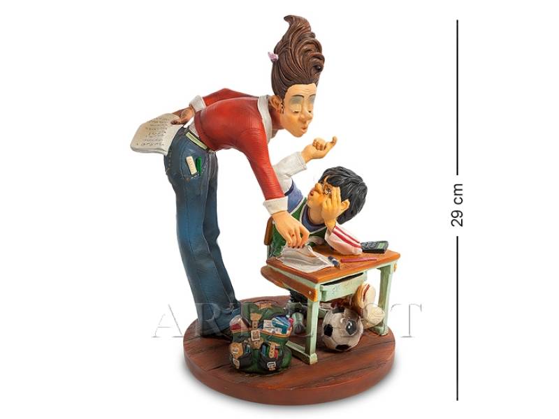 Редко, когда дети могут быть сразу усидчивыми — большинство хотят играть и веселиться. Статуэтка выполнена из полистоуна, краски безупречно нанесены, создавая полноценную картину взаимодействия ленивого ученика-футболиста и учителя математики. Отличный подарок ко «Дню знаний» или на «День учителя».