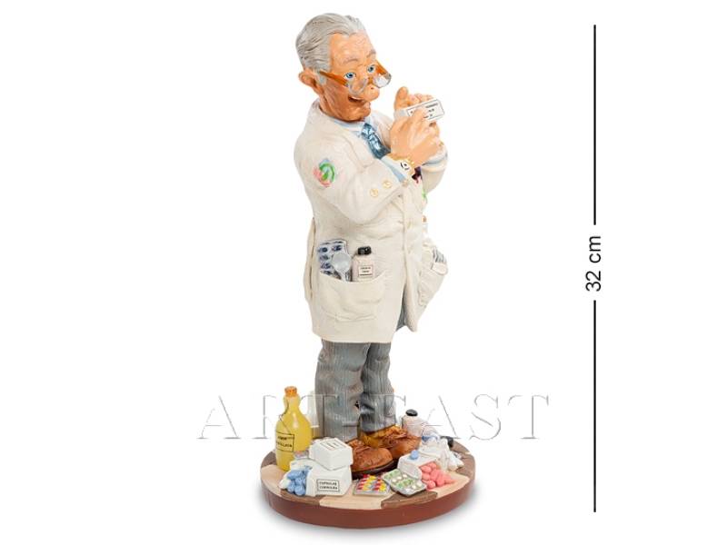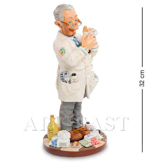 Статуэтка забавного фармацевта выполнена с неискоренимым юмором, который пронизывает всю эту коллекцию. Дядечка получился трогательным и забавным, и, глядя на выражение его лица, даже не сомневаешься — рецепт от плохого настроения у него точно есть. Достаточно крупная фигурка украсит любой уголок дома, чтобы сделать атмосферу веселее и интереснее. Веселый фармацевт всегда поможет вам вернуть себе улыбку.