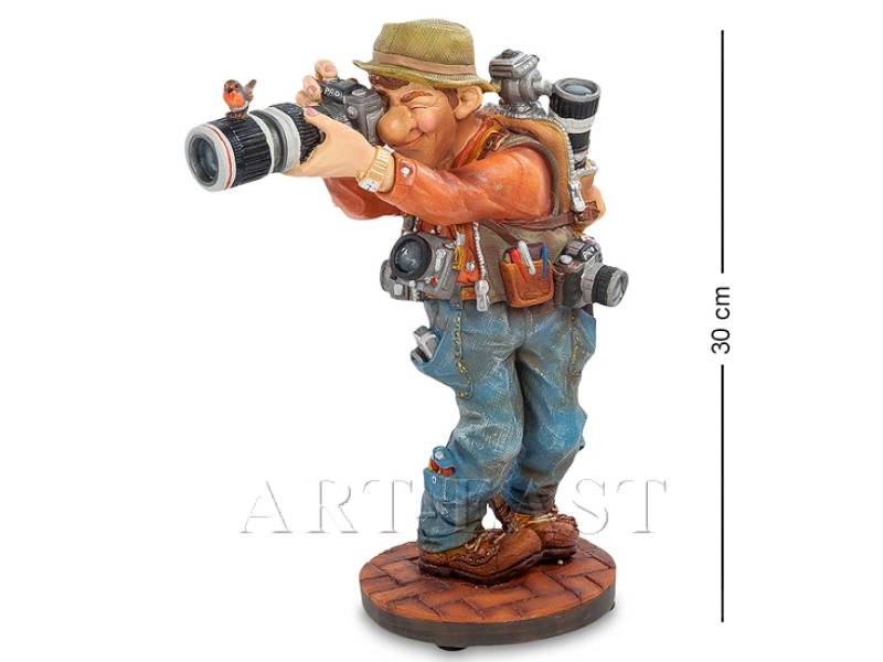 Фигурка, как и все изделия из коллекции, выполнена с огромным вниманиям к деталям, поэтому не сложно рассмотреть ни запасной аккумулятор в кармане, ни поясную сумку, ни даже сосредоточенное выражение лица этого профессионала. Такой яркий представитель этой творческой профессии непременно придется по душе домочадцам и удивит гостей.