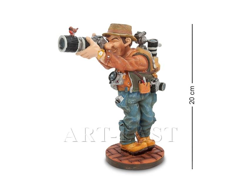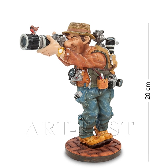 Работа фотографа пользуется спросом. Она олицетворяет вечное творчество и запечатление приятных жизненных моментов. Статуэтка «Фотограф» с изображением позитивно настроенного профи с камерой приятно удивит представителей данной профессии и всех фотолюбителей. Принесет в дизайн кабинета, спальни или гостиной креативность и позитив.