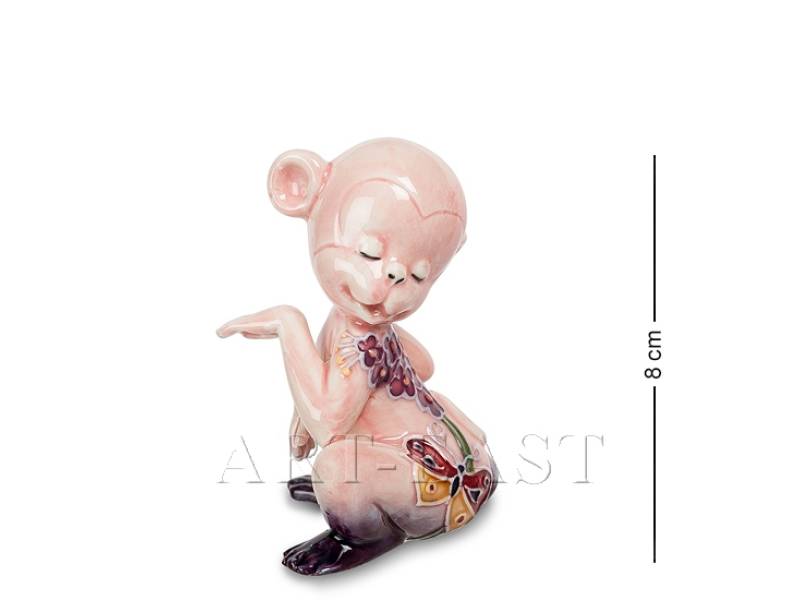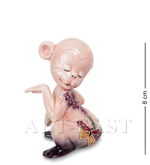 Фарфоровая обезьянка в нежно розовой цветовой гамме — идеальный подарок для девушки, которой нравится розовый цвет. Хоть и для такого животного оттенок нетипичный, но общая композиция выглядит мило и привлекательно. Кокетливая поза намекает о несказанных словах: «Ой, хватит комплиментов, перестаньте!».