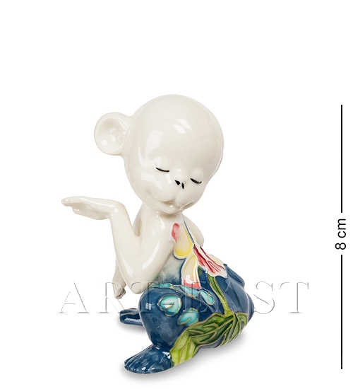 Фарфоровая обезьянка в необычной цветовой гамме с тёмно-синим низом и белым верхом может стать незабываемым подарком ко дню рождения или на первом свидании с девушкой. Если вы хотите оставить приятные воспоминания о себе, подарите эту необычную фигурку с большим цветочным орнаментом.
