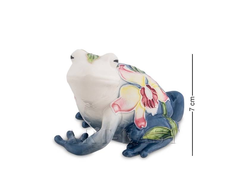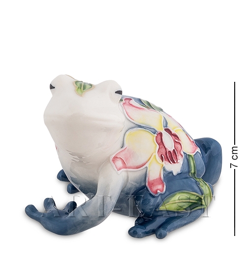 Уникальная фарфоровая статуэтка «Лягушка», удивляющая своей расцветкой. Нечасто приходится видеть лягушку в такой необычной расцветке с цветочной композицией. Фигурка сразу выделяется среди других статуэток животных сочетанием цветов и узором. Мастер оригинально сочетает форму животного с цветочной композицией, используя контрасты и подчеркивая чистоту мысли белым цветом.