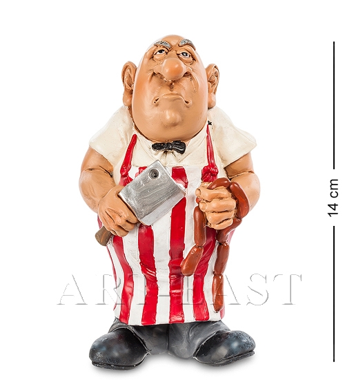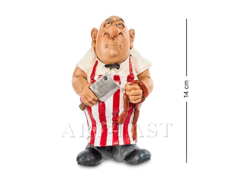 Фигурка мясника высотой 14 см станет хорошим подарком на профессиональный праздник, украсит магазин кулинарии.