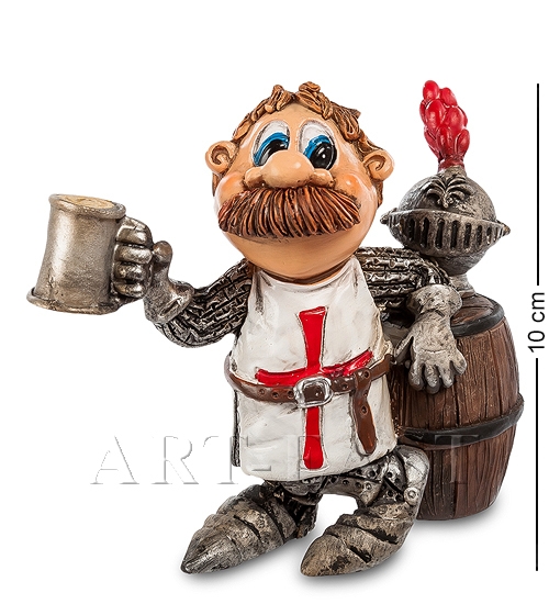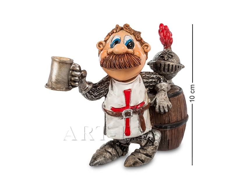 Неужели не видно, что это – рыцарь? Белый плащ крестоносца, правда, больше на передник смахивает, но на ногах – латы, рядом – шлем с ярким плюмажем, а в руке… Ну, почему обязательно меч? Время мирное, оружие можно и отложить. А что в руке у рыцаря в мирное время? Правильно, кружка. И бочка есть, значит, есть чем заняться в свободное время. Подарите такую фигурку человеку, считающему себя настоящим рыцарем, и улыбнитесь вместе с ним.