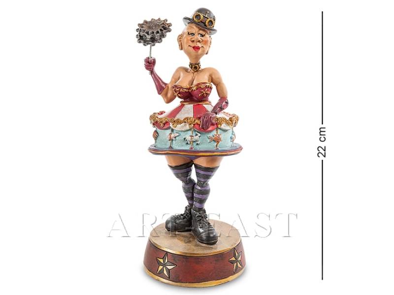 Шуточная фигурка "Королева цирка" создана дарить положительные эмоции. Посмотрите, сколько комичности и фарса в этой, уже немолодой, героине. Тонко подмеченные особенности жанра, мастерски переданные в деталях костюма и грима клоунессы, вызывают улыбку у каждого. Вне всякого сомнения, эта неповторимая статуэтка будет оценена по достоинству всеми теми, кому присуще чувство юмора и позитивное отношение к жизни.