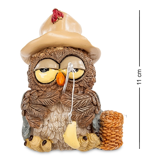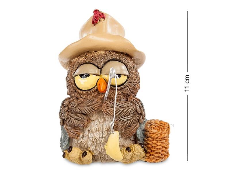 Фигурка совы-рыбака высотой 11 см станет оригинальным, забавным подарком заядлому рыбаку.