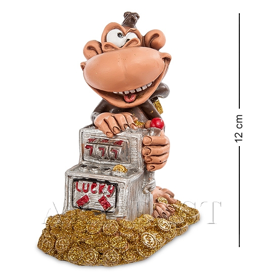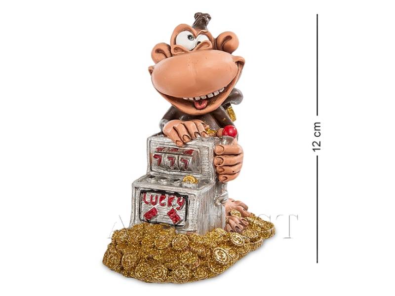 Веселая обезьянка, изображенная с одноруким бандитом, на барабанах которого застыли магические цифры 777, это подарок на счастье, подарок на фарт. Неважно, кому его дарить - обезьянка вызовет улыбку и понравится кому угодно, даже ребенку.