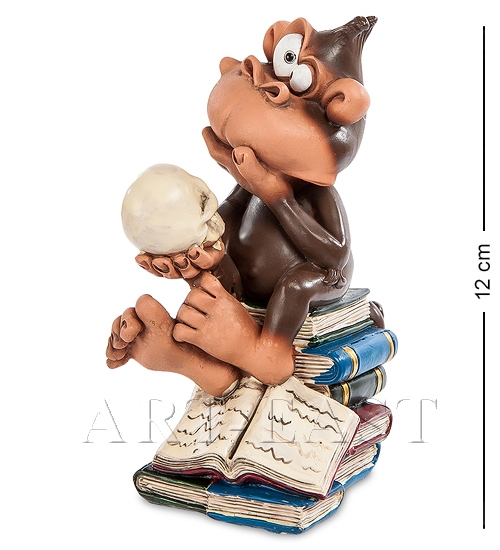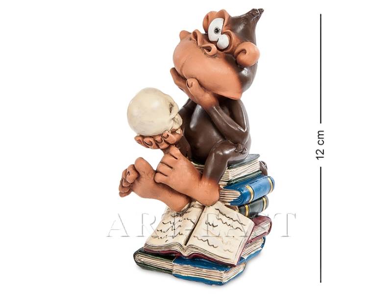 Учиться, учиться и учиться! Не меньше, чем эта забавная, но умная обезьянка, не зря расположившаяся на стопе толстых книжек. Похоже, она их уже все прочитала, но бумага – это одно, а натуральный опыт – совсем другое. Череп в руках – та еще загадка. Аж глаза в кучку сошлись, и хвост колечком свернулся. Ну, чем не шекспировский образ? Бедный Йорик! Знал бы ты, кто тебя изучать будет! Прекрасный подарок постигающему азы науки: философский подход никому не помешает.