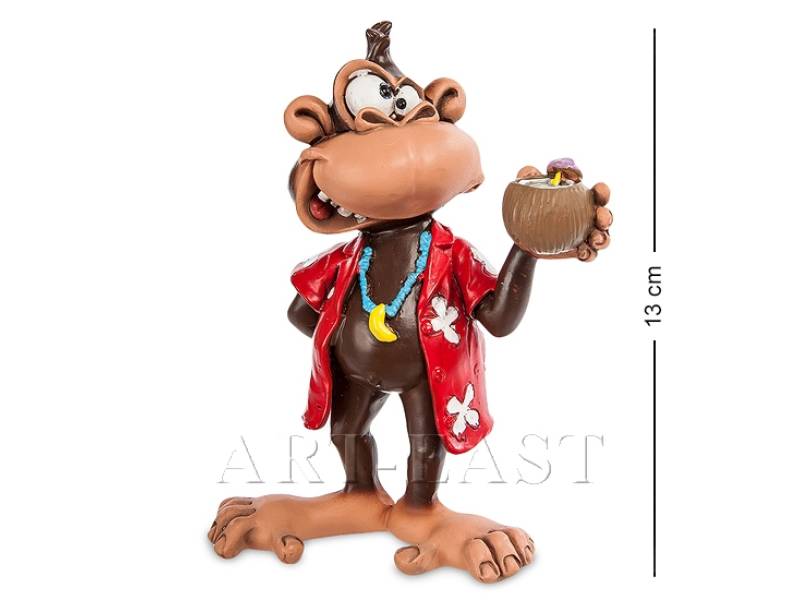 Вы только посмотрите на эту жизнерадостную фигурку - сколько позитива и задора вложили в нее дизайнеры! Забавная обезьяна явно переборщила с местными коктейльчиками и загаром, выделяющимся на фоне ярких аксессуаров и одежды пляжной модницы. Ее отпуск удался на славу, что, вне всякого сомнения, бросается в глаза. Оригинальная статуэтка обезьяны создана дарить положительные эмоции, которых нам так часто не хватает в суете рабочих дней.