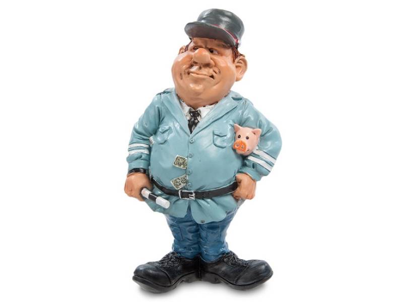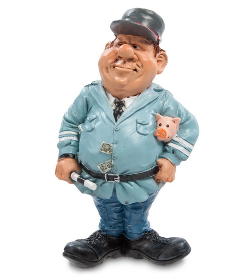 Да, работа инспектора ГИБДД – очень денежная. Вот статуэтка «гаишника» - типичный инспектор – очень упитанный мужчина с обязательным рабочим инструментом – полосатой палочкой. Строгий взгляд чуть прищуренных глаз готов увидеть нарушения правил движения даже в тех случаях, когда этих нарушений и не было.