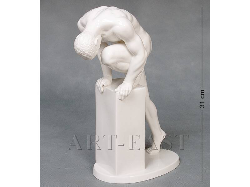 На протяжении многих веков обнаженная натура остается одной из наиболее привлекательных тем в искусстве. Еще древние греки и римляне воспевали в скульптуре красоту обнаженного мужского тела, являющегося воплощением мужественности и силы. Весь мир восхищается древнегреческими статуями атлетов, идеальными пропорциями их тел. На протяжение столетий они украшали фасады и интерьеры дворцов и общественных зданий. Статуэтка "Атлет", выполненная из фарфора, гармонично впишется в интерьер практически любого стиля от классики до хай-тека. Добавит в ваш дом или офис изысканности и стиля.